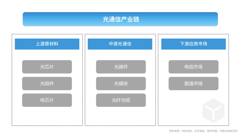 我们正处在一个由数据包裹的时代。 从人工智能,到5G高清视频,再到万物互联的智能设备,海量信息如潮水般在全球范围内奔涌。支撑这一切的,是一条看不见的超级高速公路——光通信网络。它以光速贯通世界,是现代文明的神经网络。然而,在这条信息动脉的背后,一场关于速度与精度的极致竞赛正悄然上演。 01 光通信:数字世界的无形动脉相比传统的电通信,光通信拥有无可比拟的优势。 首先是巨大的传输带宽。理论上,一根光纤的带宽几乎是无限的,通过波分复用(WDM)等技术,可以在一根光纤上同时传输数百甚至数千路信号,轻松实现T比特级的传输速率。其次是极低的传输损耗和高保真度,光信号在特制光纤中传输,衰减极小,能保证长距离传输后信息的完整性。 在5G、云计算、物联网和人工智能等需求的强力驱动下,全球数据流量正呈指数级增长,光通信行业也因此迎来了前所未有的发展机遇。 02 精密制胜:高速光通信的基石光通信产业链分上中下游,上游主要是核心零部件环节包括光芯片、光组件、电芯片,中游包括光器件、光模块和光通信设备,下游按应用场景分为电信市场和数通市场。