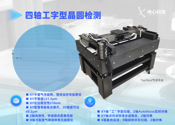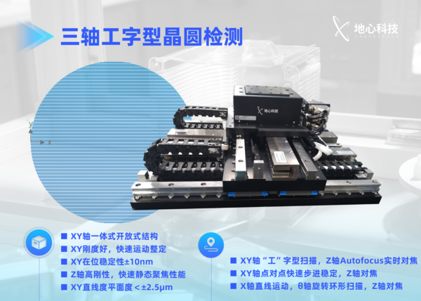 一文总结|精密运动平台在晶圆缺陷检测中的多种应用半导体制造工艺复杂,为确保质量,几乎每一道工序都需进行严格检测。若缺陷品流入后续环节,不仅会严重影响产品整体质量,还将造成生产成本的大幅上升。在这一环节中,无论是AOI(自动光学检测)系统,还是SEM(扫描电子显微镜)系统,承载晶圆的精密运动平台都是决定检测精度与效率的核心组件。 面向晶圆表面缺陷与尺寸检测需求,地心科技各系列运动平台可为自动检测设备集成商提供多样化性能解决方案,支持蛇形折返飞拍线性扫描、面阵相机点对点区域检测、高速螺旋轨迹检测等多种模式,实现晶圆的准确、高效筛选。